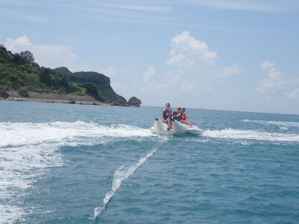大人数でのマリンスポーツの際にはバナナボート体験もお勧めです。きっといい思い出作りのお役に立てるとおもいます。