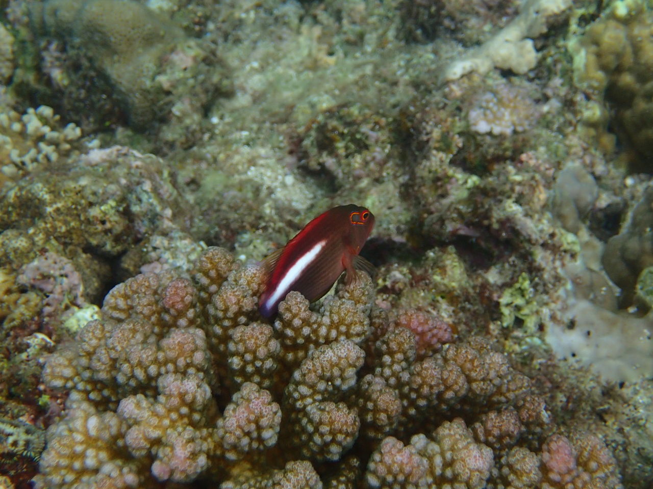 こちらはメガネゴンベ その名の通りめがねをけているような模様から祖うなずけられました! こうやってよくサンゴの上で監視業務をしております。。
